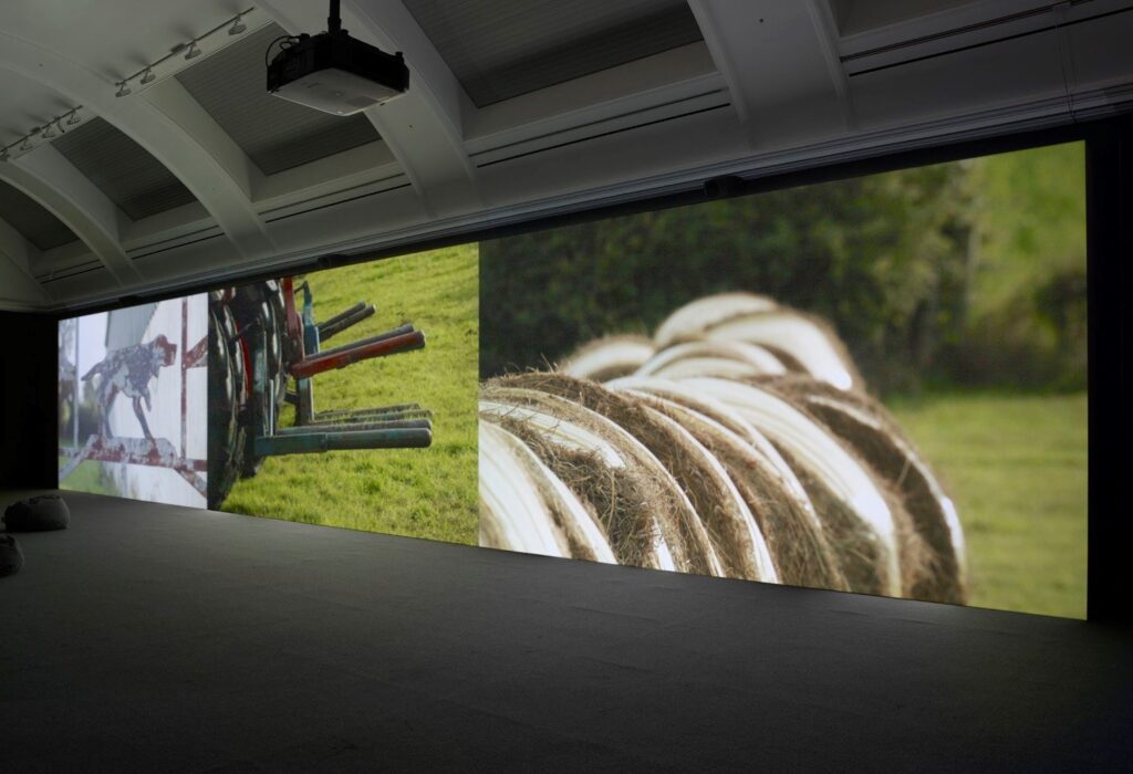 The Yellow LineIn five rural regions where the borderline between Northern Ireland and Ireland is indiscernable, residents engaged in playful construction of unique ‘actions’ expressing their various sentiments and hopes for the future of their region. The actions were filmed, resulting in a three–screen film projection made with farmers, horse–owners, scouts, hikers and villagers from communities across Fermanagh, Donegal, Leitrim, Cavan and Monaghan.